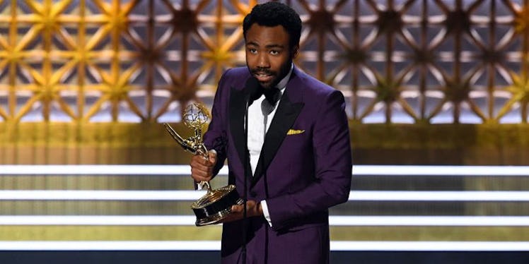 The Emmys may *technically* be about the best TV of the past year, but for the 2017 awards show, let's be real, it's about gawking at some very good looking actors. I mean, Riz Ahmed, Milo Ventimiglia, James Marsden, the list of internet crushes nominated for Emmys, or on nominated shows, is endless. And thankfully, we got to see one take the stage when Donald Glover won the Emmy for Best Actor in a Comedy Series for his starring role in FX's Atlanta. But I hope you were able to pay attention to what he was saying on stage, because Donald Glover's Emmys acceptance speech was incredible.