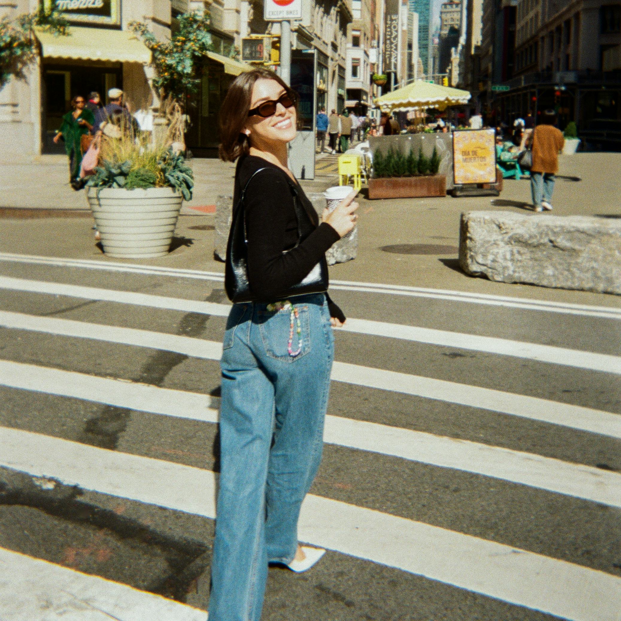 Tay Lautner walks into Maman in the Flatiron district, looking every bit like a Manhattan girl: wearing a simple black top, light-wash jeans, and sunglasses, with her shiny, blunt bob framing her face and white block heels clacking satisfyingly on the concrete sidewalk. She’s a born-and-raised Californian, but every time she visits the city, she tries to find a reason to stick around. “I was telling my husband, ‘Do we stay an extra day and look at apartments?’ He was like, ‘No, we’re going home.’ I was like, ‘OK, bye,’” she laughs. “I wouldn’t move here, but maybe I would do a little six-month rental.”