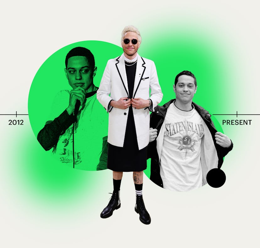 When it comes to unlikely fashion inspo, Pete Davidson just might take the cake. From his earliest standup sets to walking the Met Gala stairs with Kim Kardashian in 2022, Davidson’s style evolution is truly an impressive feat. The 30-year-old has gone from skater boy to fashion darling, wholly unafraid to get bold with his looks.