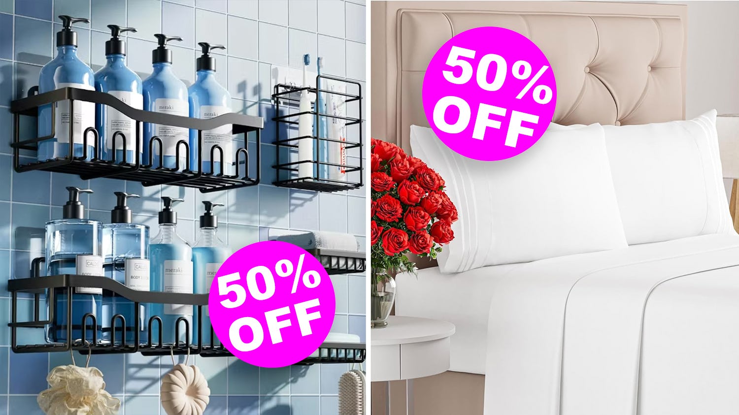 With a rustproof design and an adhesive backing so there is zero drilling, this shower caddy will instantly elevate your bathroom setup. This set features two equal-sized shelves for shampoos, body washes, or larger products, as well as two soap trays and a smaller vertical shelf that's perfect for toothbrushes or face washes. It's at an incredible price while supplies last.