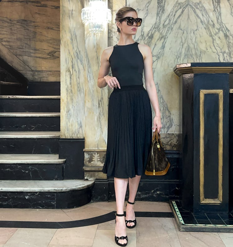I tried the on-trend Rhea sandal, which arrived impressively packaged. (One of the first things I noticed was how the brand includes a dust bag to protect your investment.) Elizée shoes are handmade in Italy exclusively using ethically-sourced sustainable leather from tanneries with the highest rating from the Institute of Quality Certification, so the leather was buttery-soft out of the box and I had no trouble breaking them in. They fit perfectly, as well — almost too perfectly in my case, so I might recommend taking a half-size larger if you’re in-between sizes. One thing I especially appreciated was how the heel flared out just a touch at the base, creating a wider foundation to walk on for added stability without sacrificing the look of a thinner heel. (Plus, there’s a tiny bit of a platform, which reduces how high the heel actually feels.) The heels were easy to walk in, even on New York City asphalt, and couldn’t have been prettier.