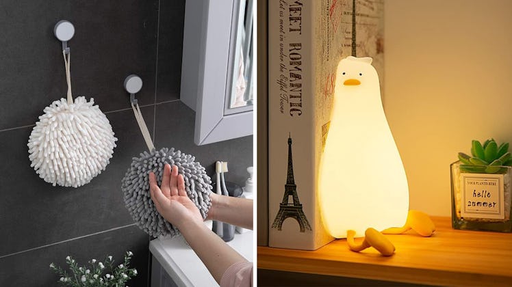 These sphere-shaped hand towels are so much more aesthetic than a classic towel, but they’re also impressively functional. They’re super absorbent, and the fuzzy design makes it easy to dry between your fingers. Each of these quirky towel balls comes with its own hanging loop, and you can even toss them in the washing machine.