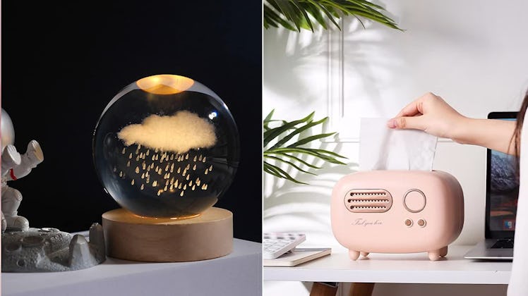 This night-light uses 3D technology and comes with displays of natural elements inside the crystal ball — from a rain cloud to the solar system. It has an elegant wooden base that looks super high-end. And it has 16 colors and five lighting modes — from flashing to fading to consistent — to choose from for a customizable lighting experience.